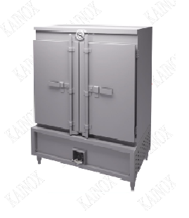 -100kg, 1buner gas, 2 door, 20 steam pans (5kg of rice per pan), water in/out